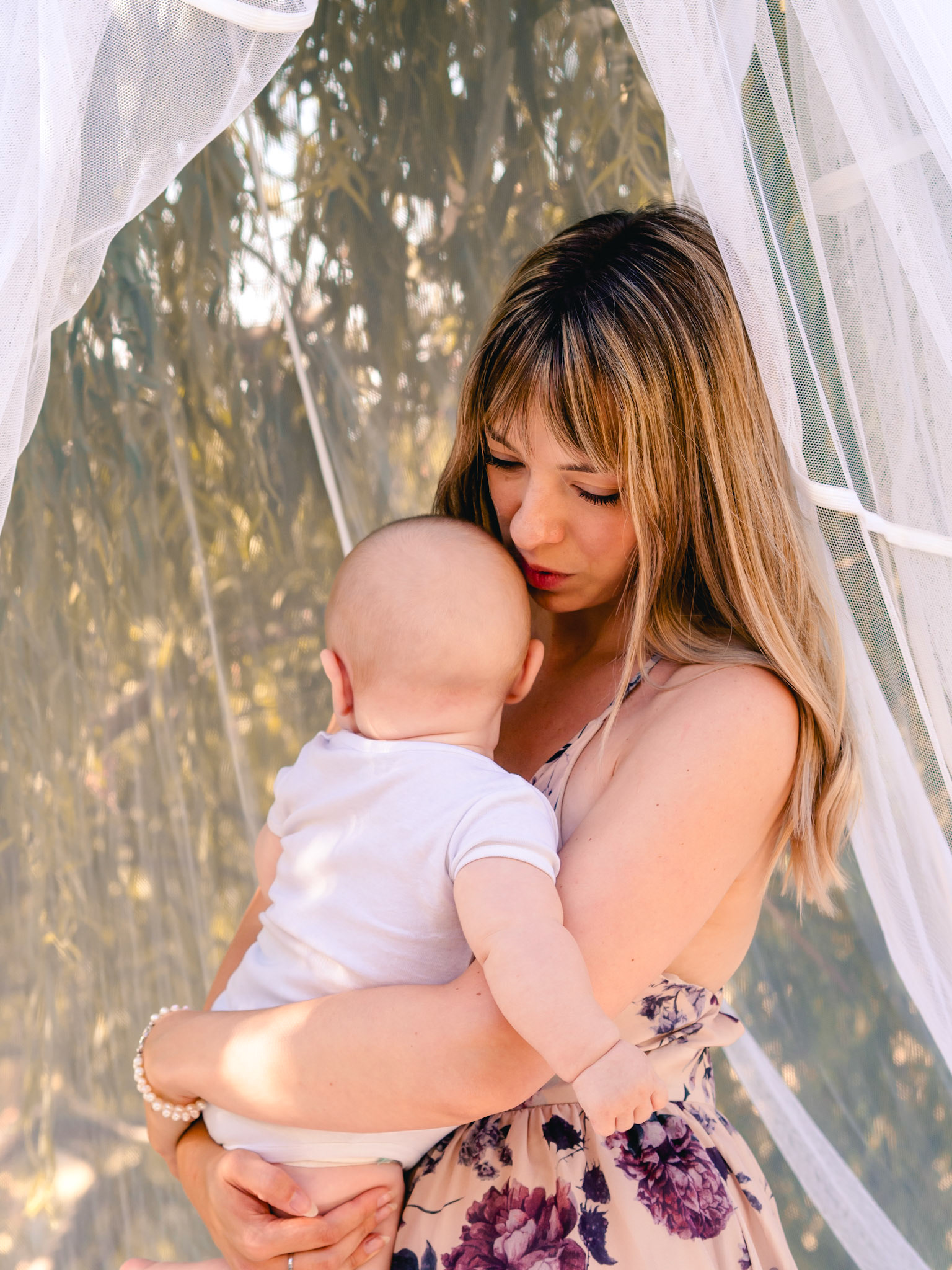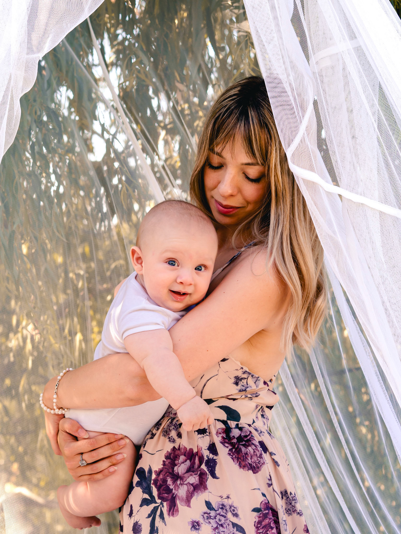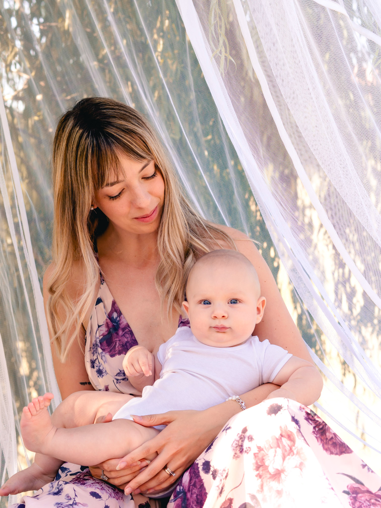 Quegli occhioni azzurri curiosi mi hanno conquistata subito! Tra le braccia della sua mamma non si è perso un attimo di questo shooting.