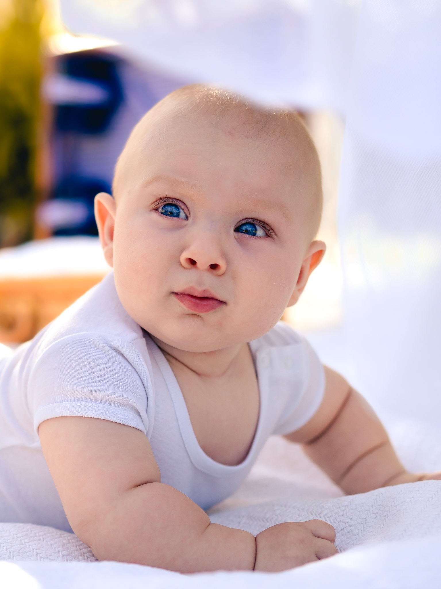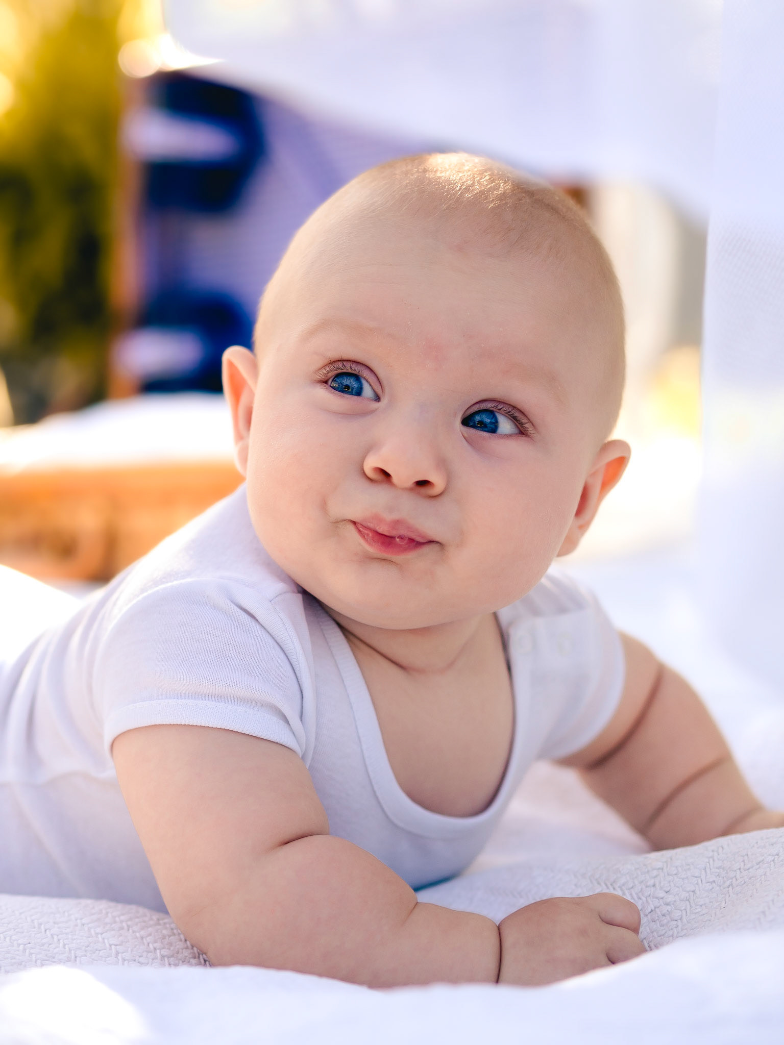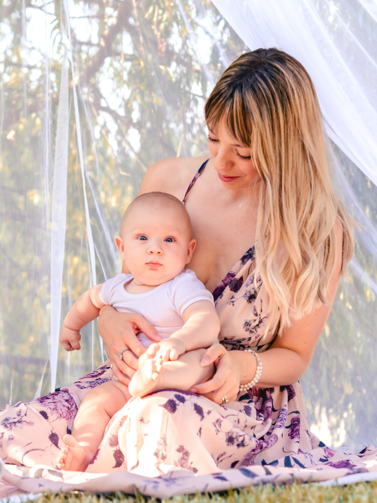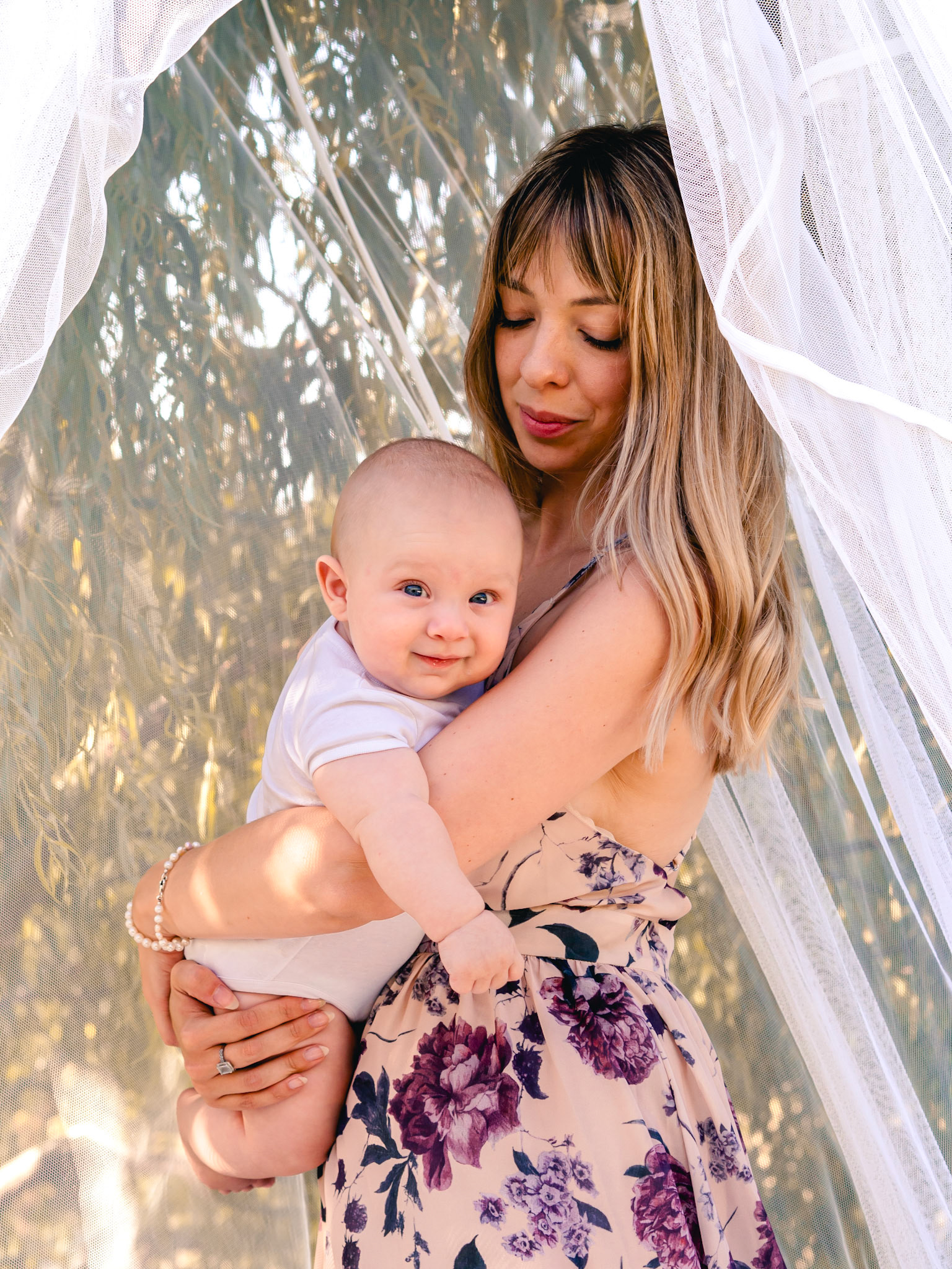 Quegli occhioni azzurri curiosi mi hanno conquistata subito! Tra le braccia della sua mamma non si è perso un attimo di questo shooting.